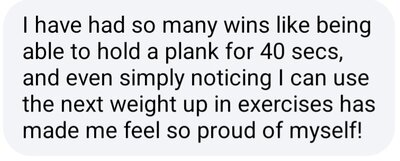My main focus is on giving you more 1:1 support to you without the 1:1 personal training price tag. With access to direct message me throughout your time, you can ask questions, get feedback on exercises or just get more guidance on anything you need!