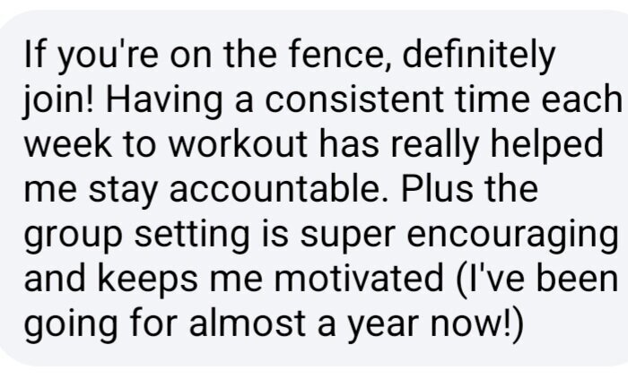 My main focus is on creating smaller group intakes to allow for more 1:1 support to you without the 1:1 price tag. This can be done in person if you're local, or via my online fitness app.