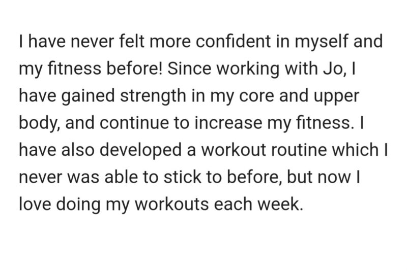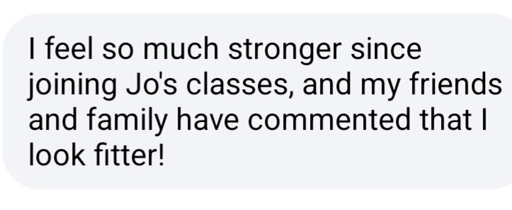 "Since starting Jo’s class, I’ve felt I look a lot stronger and more energetic. Friends and family have commented that I look more toned and fitter!"